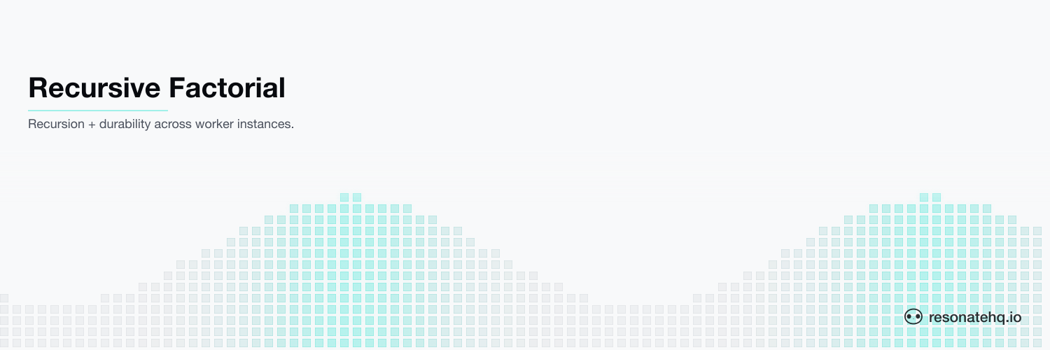 Use ctx.rpc instead of a direct function call. The recursive call goes to the Resonate Server, which dispatches it to whichever worker in the target group is available — so a deep recursion fans out across N workers automatically. Each call's result is a durable promise, so a worker crash mid-recursion just hands the unfinished call to a survivor.