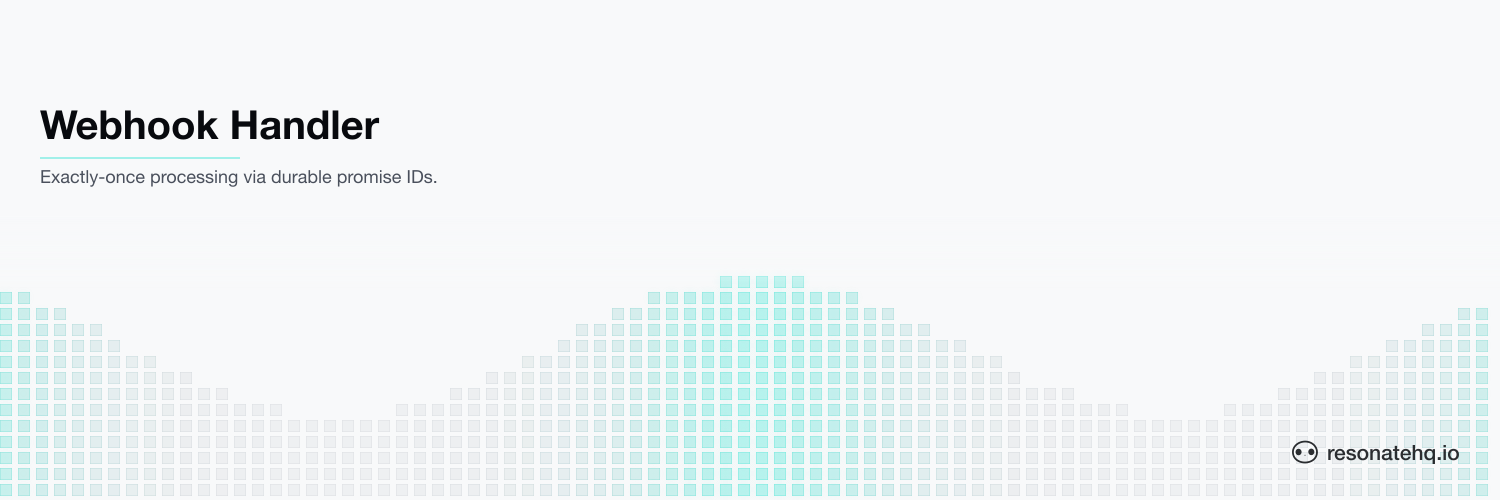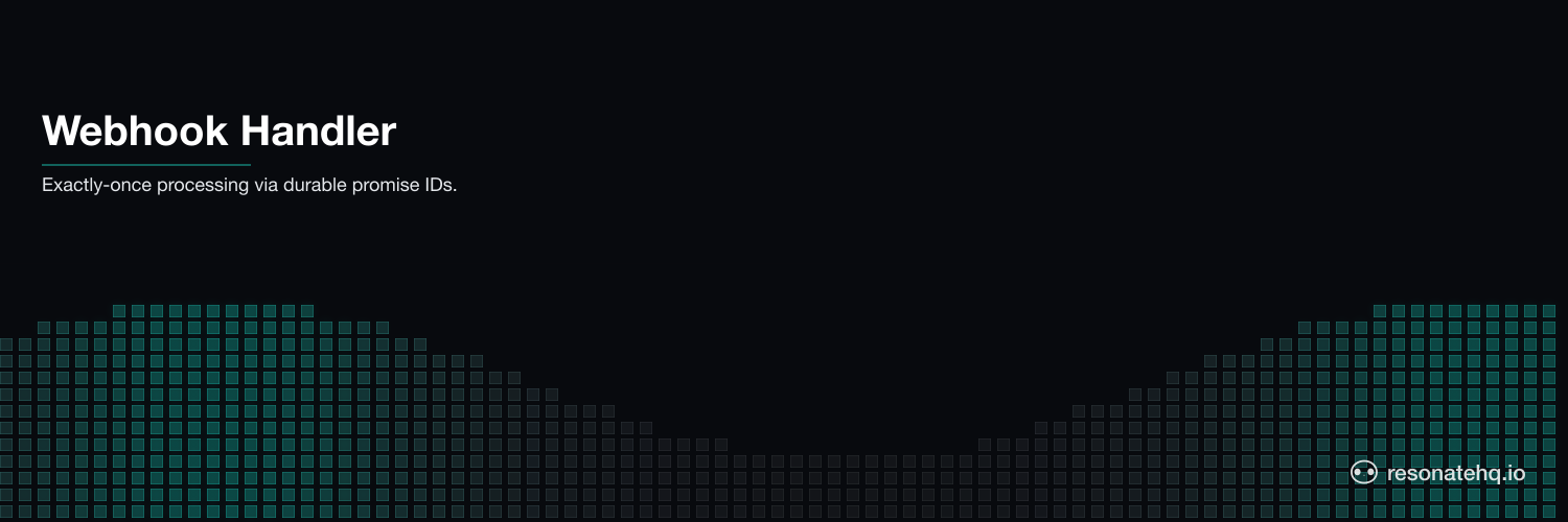 The provider's event ID is the workflow ID. Resonate's promise dedup means a duplicate delivery with the same event ID reconnects to the in-flight (or completed) execution rather than starting a second one. The downstream steps — charge card, send receipt, update ledger — each checkpoint, so a crash between any two resumes from the next step rather than re-running the whole pipeline.